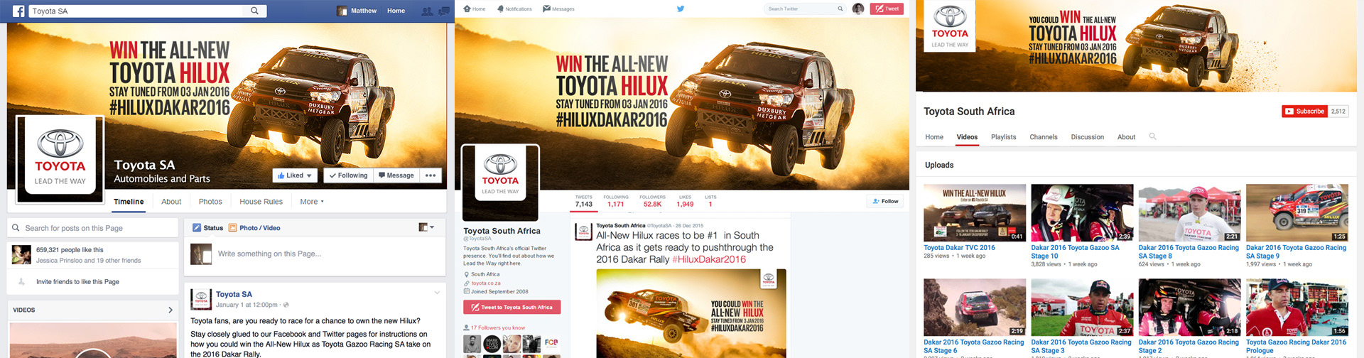 We decided that the best way to raise excitement around the Hilux and the Dakar Rally was to make fans feel as though they were part of the action. To do this, we devised a multi-pronged engagement campaign that would extend across Toyota's social platforms, website and TV presence.